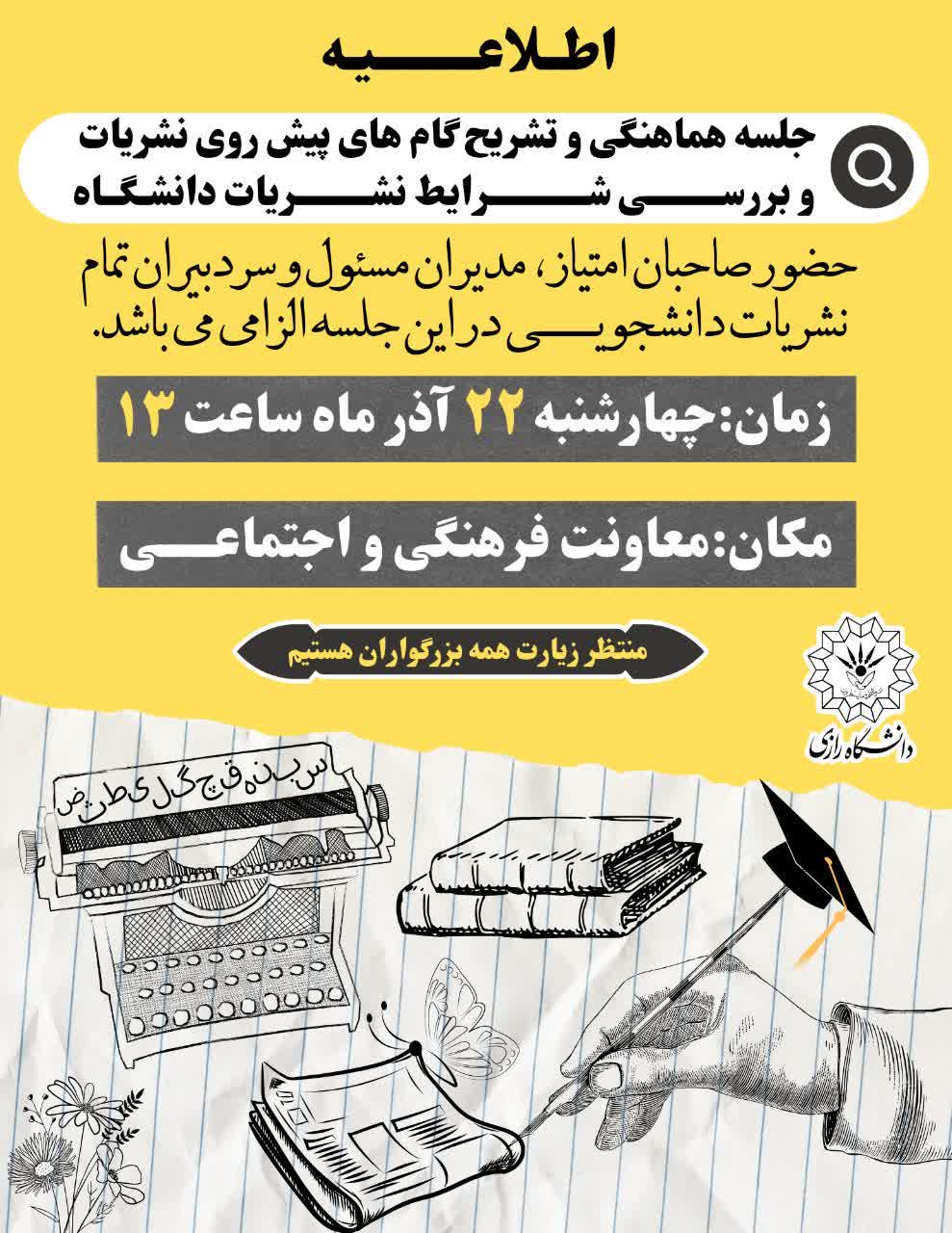 819 جشنواره سراسری رسانه و نشریات دانشجویی کشور تیتر ۱۳ مهلت ارسال آثار تا پایان آذرماه بخشهای جشنواره بخش رقابتی 1⃣اثر برگزیده 2⃣نشریه برگزیده 3⃣بخش مجازی 4⃣سایت یا وبلاگ 5⃣نشریات صوتی یا...