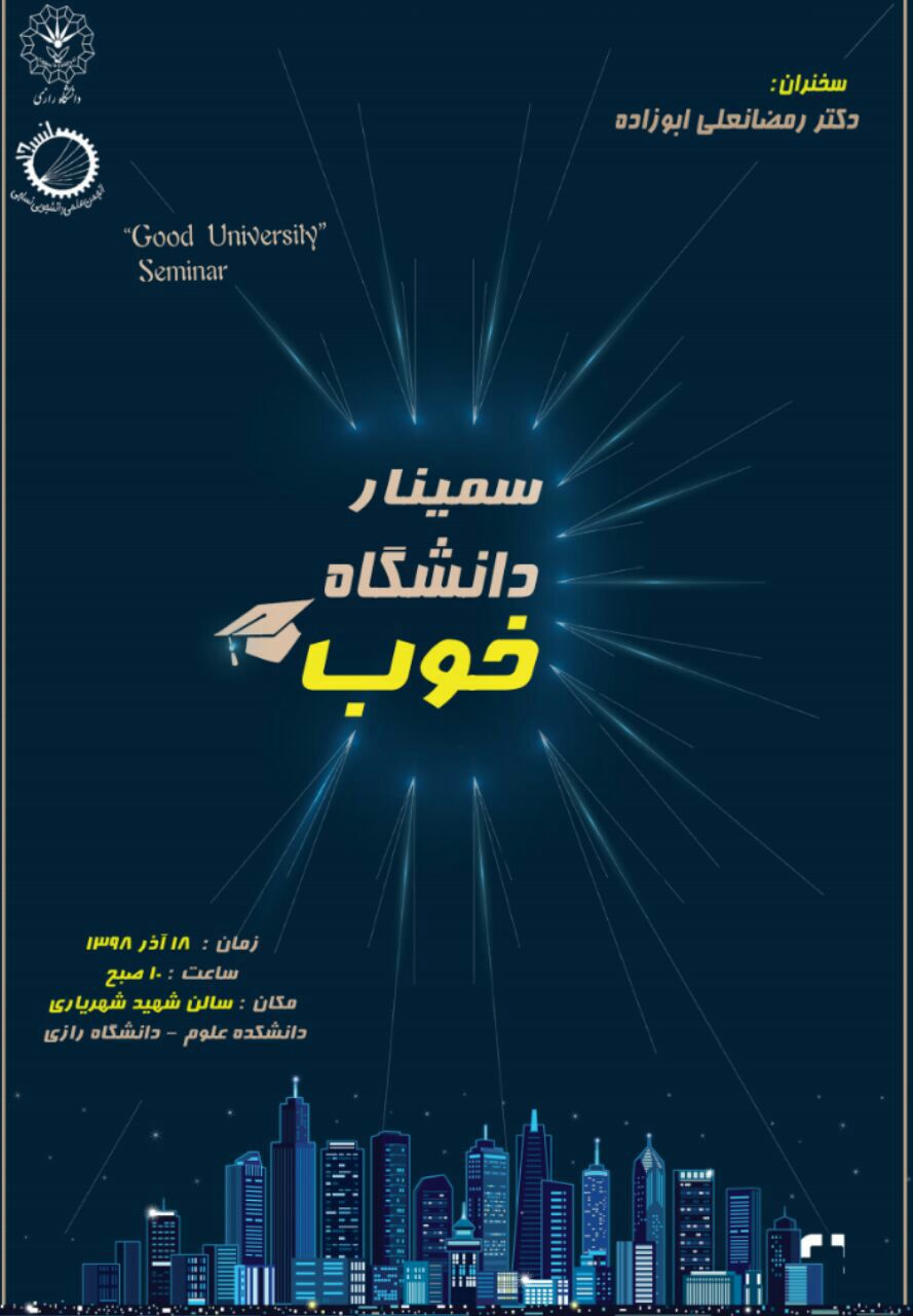 به مناسبت گرامیداشت روز دانشجو، انجمن علمی دانشجویی مهندسی نساجی دانشگاه رازی «سمینار دانشگاهِ خوب» را برگزار می کند.