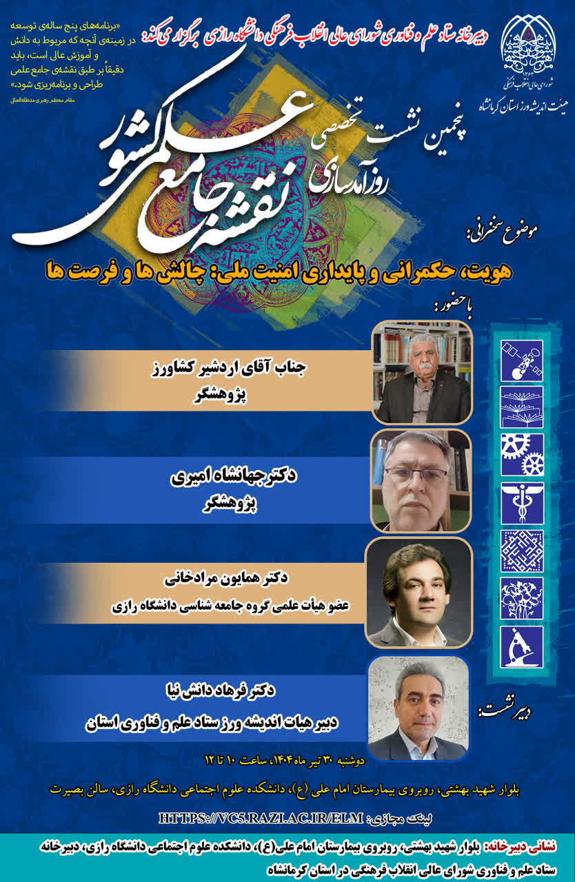 مکان: بلوار شهید بهشتی، روبروی بیمارستان امام علی (ع)، دانشکده علوم اجتماعی دانشگاه رازی، سالن بصیرت