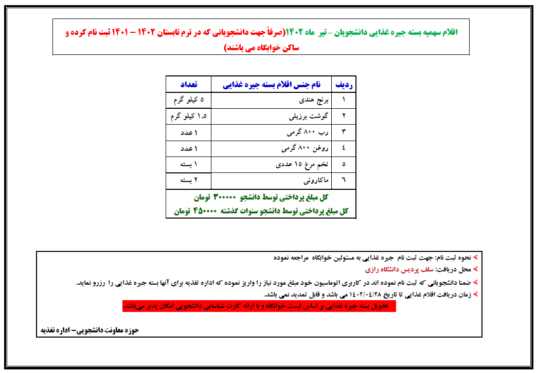 مخصوص دانشجویانی ساکن خوابگاه (ترم تابستانه)