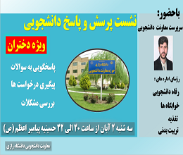 35081 به همت معاونت دانشجوئی برگزار گردید: معرفی نفرات برتر مسابقه املت دانشجوئی معاونت دانشجوئی به مناسبت هفته خوابگاه ها مسابقه املت دانشجوئی ویژه دانشجویان پسر را برگزار نمود. زمان برگزاری: سه...