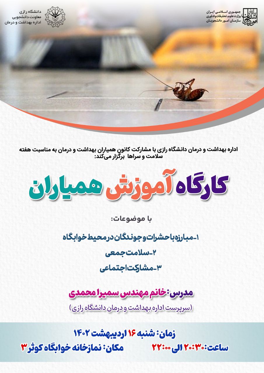 زمان: دوشنبه 27 فروردین ماه ساعت 08:00 مکان: آمفی تئاتر حوزه معاونت دانشجویی