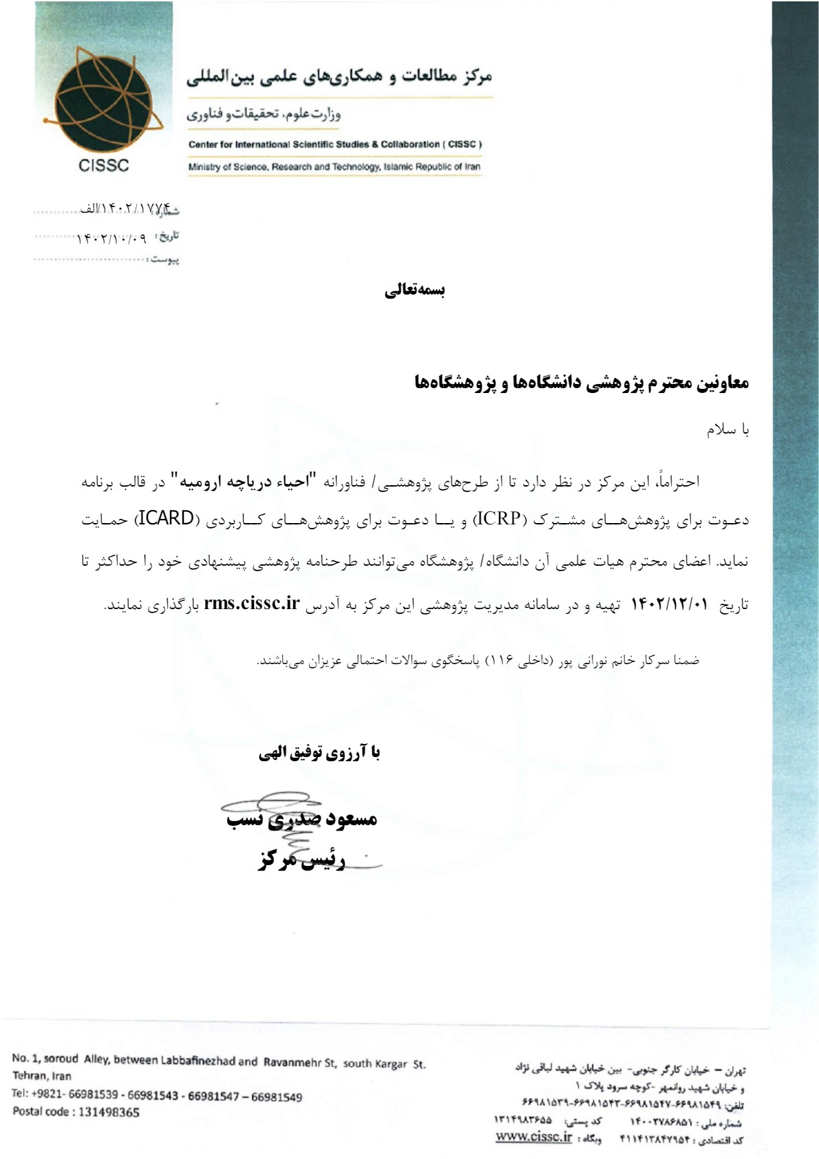 حمایت از طرحهای پژوهشی مرتبط با موضوع احیاء دریاچه ارومیه