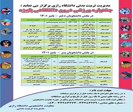810 برگزاری مسابقات ورزشی مهارت شوت فوتسال به مناسبت گرامیداشت روز دانشجو پیشرفت هر جامعه در گرو تلاش و کوشش نسل سالم و با نشاط می باشد و نقش سازنده تربیت بدنی و ورزش در تامین سلامت و بهداشت جسمانی...