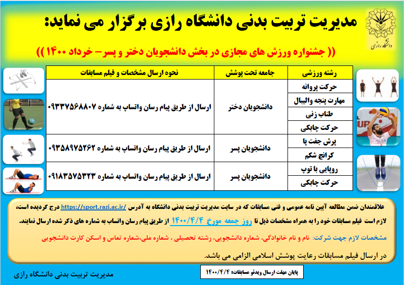 جشنواره ورزشی درون دانشگاهی مجازی - خرداد ۱۴۰۰ - مدیریت تربیت بدنی