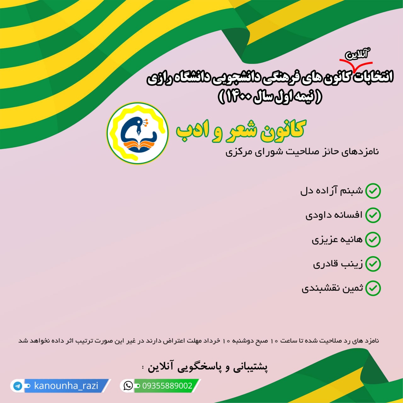 نامزدهای حائز صلاحیت شورای مرکزی کانون شعر و ادب