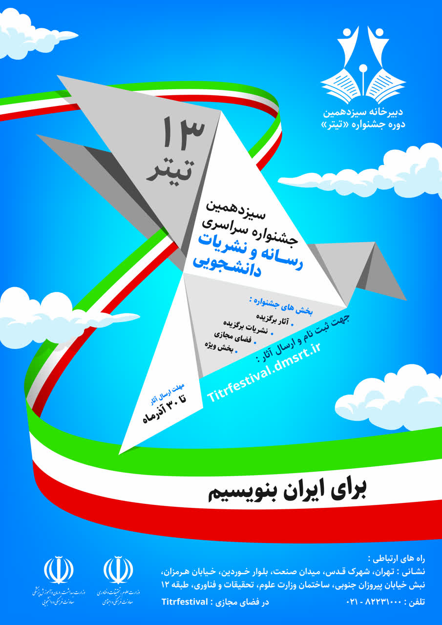 جشنواره سراسری رسانه و نشریات دانشجویی کشور تیتر ۱۳ - معاونت فرهنگی