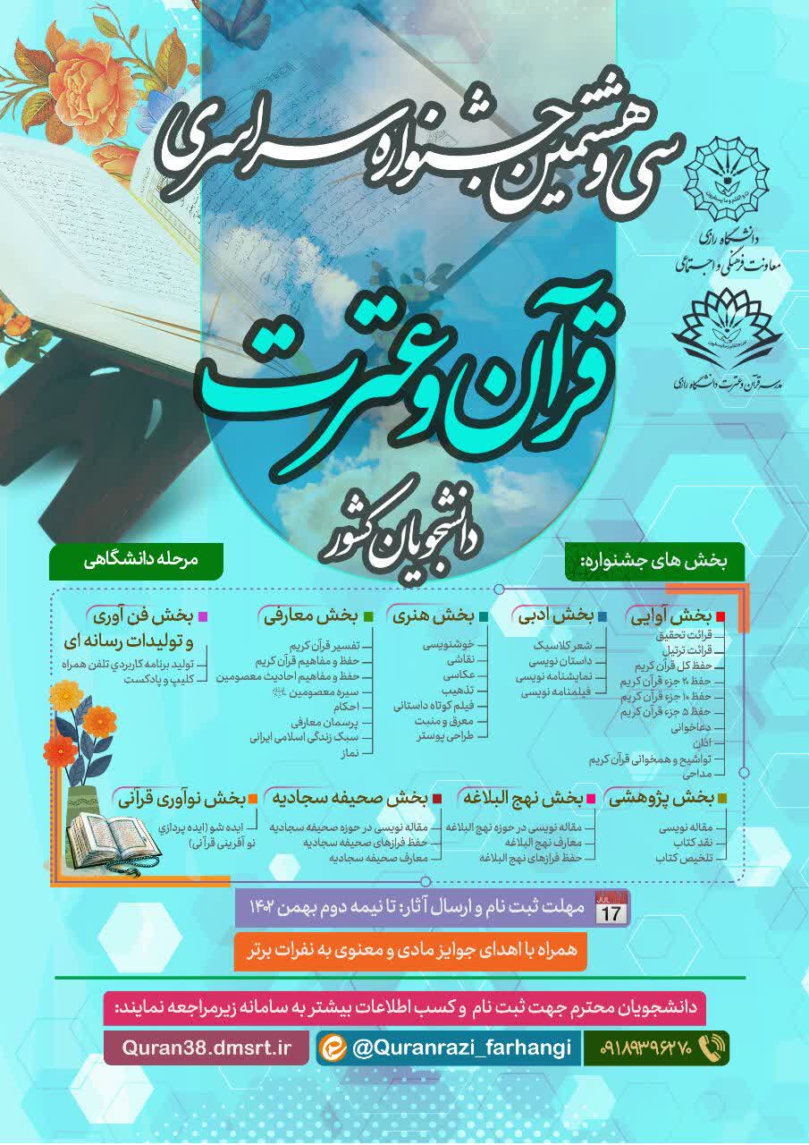 فراخوان ثبت نام سی و هشتمین جشنوارۀ سراسری قرآن و عترت دانشجویان کشور