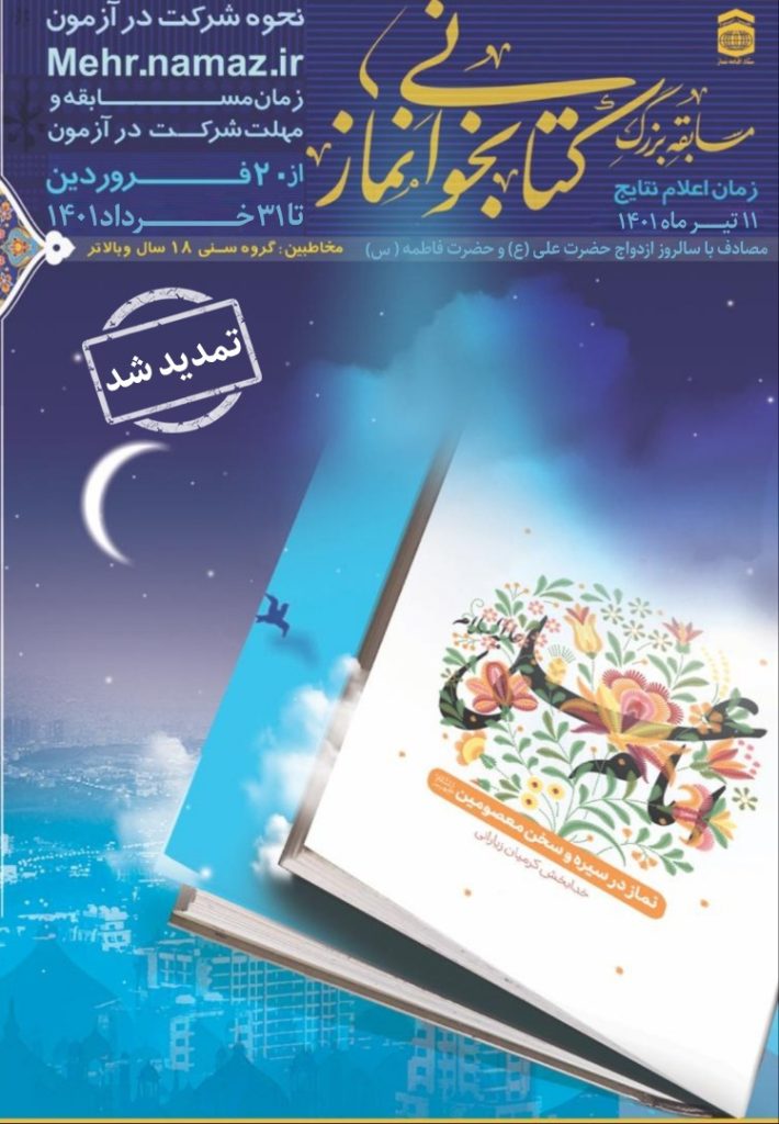 مهلت تعیین شده جهت مطالعه کتاب و شرکت در آزمون مسابقه از تاریخ ۲۰ فروردین الی ۳۱ خرداد سال ۱۴۰۱ به مدت ۷۴ روز می باشد.