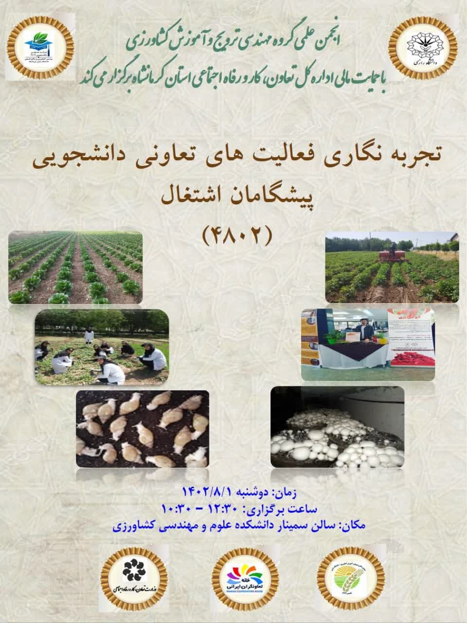 2601 انجمن علمی ترویج و آموزش کشاورزی برگزار میکند تجربه نگاری فعالیت های تعاونی دانشجویی پیشگامان اشتغال(4802) تجربه نگاری فعالیتهای تعاونی دانشجویی پیشگامان اشتغال(۴۸۰۲) تاریخ: ۱/ آبان / ۱۴۰۲...