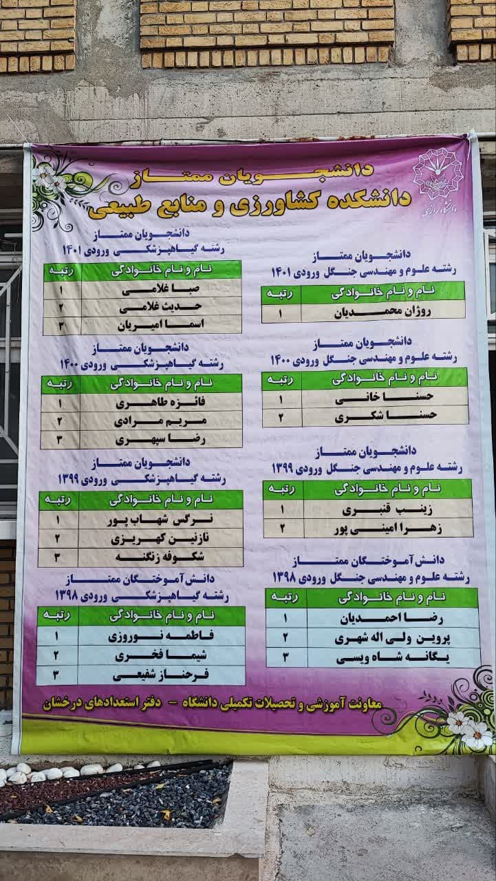 3162 دانشجویان ممتاز پردیس کشاورزی و منابع طبیعی معرفی شدند. شناسه : 10853566