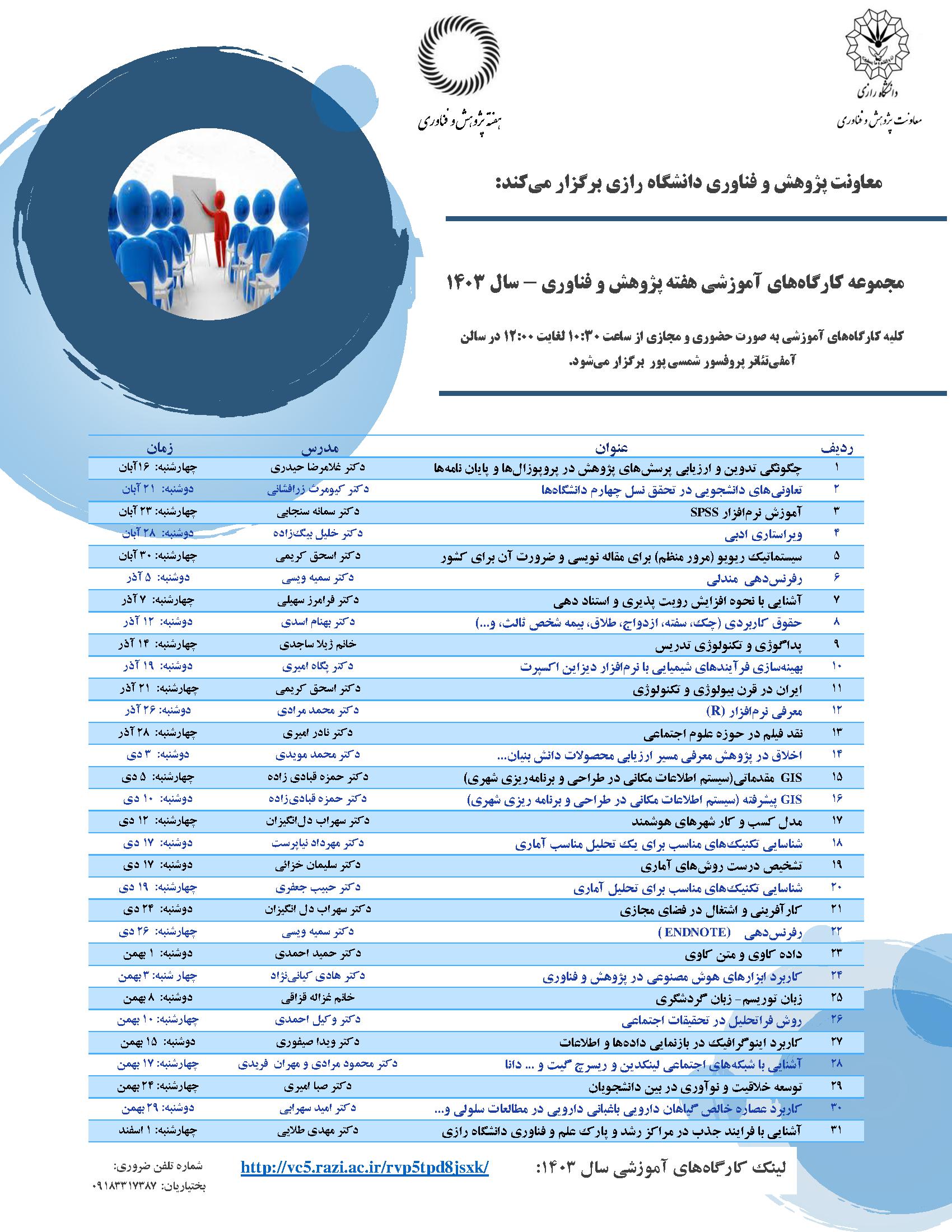 برگزاری کارگاههای آموزشی به مناسبت هفته پژوهش و فناوری سال 1403 - معاونت پژوهشی و فناوری