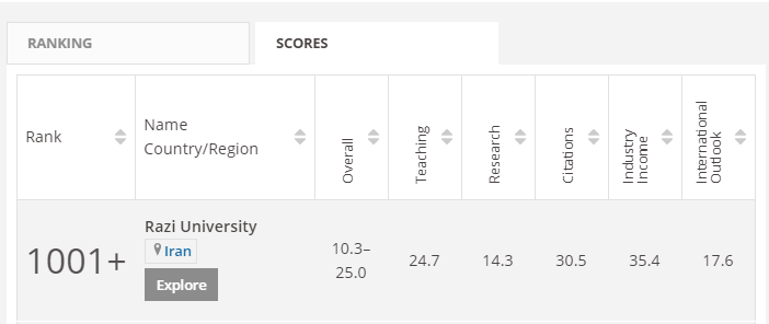 امتیازات دانشگاه رازی در شاخص های نظام رتبه بندی تایمز