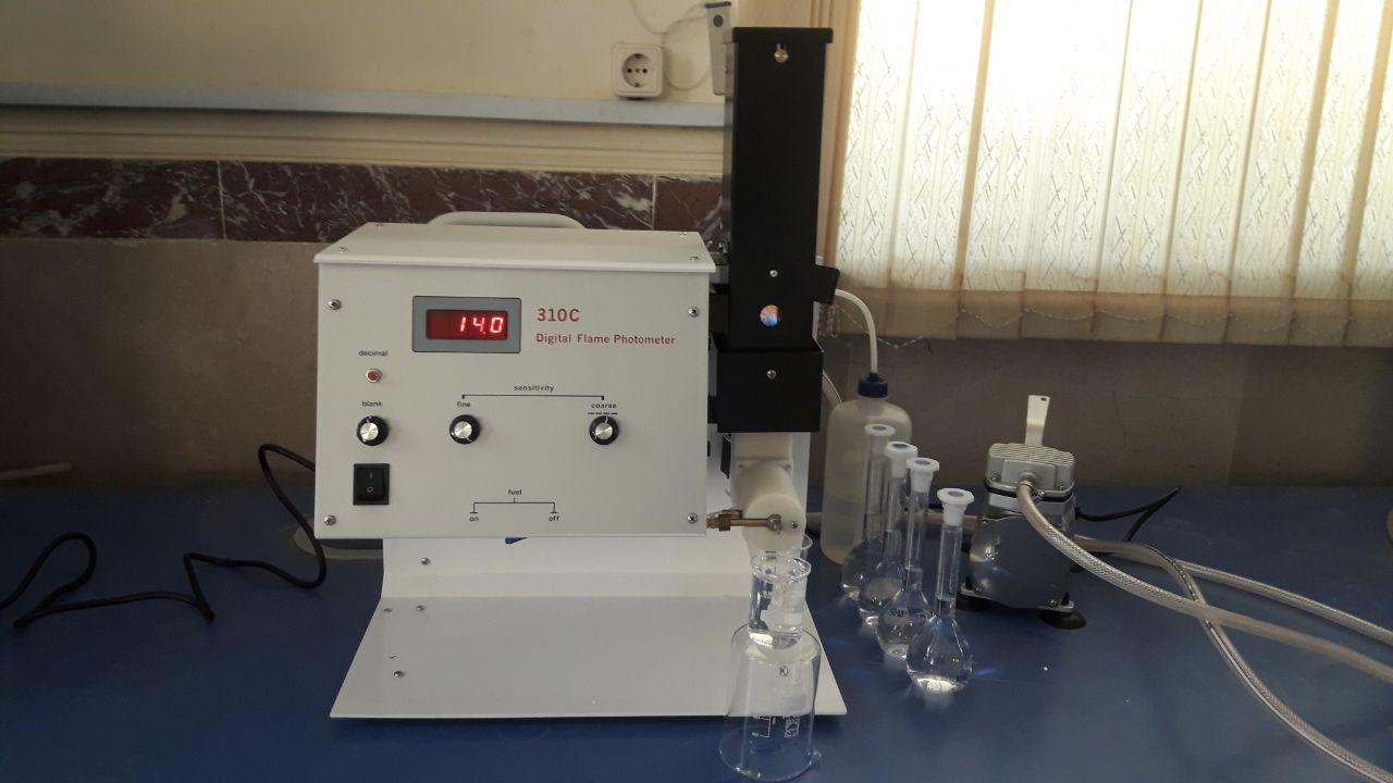 دستگاه Flame Photometer شعبه دو آزمایشگاه مرکزی دانشگاه رازی مدل 310C ساخت کشور جمهوری اسلامی ایران است که برای اندازه گیری عناصر سدیم(Na)، پتاسیم(K) و لیتیم(Li) که برای برانگیخته شدن آنها به انرژی کم و دمای پایین نیاز است استفاده می شود.