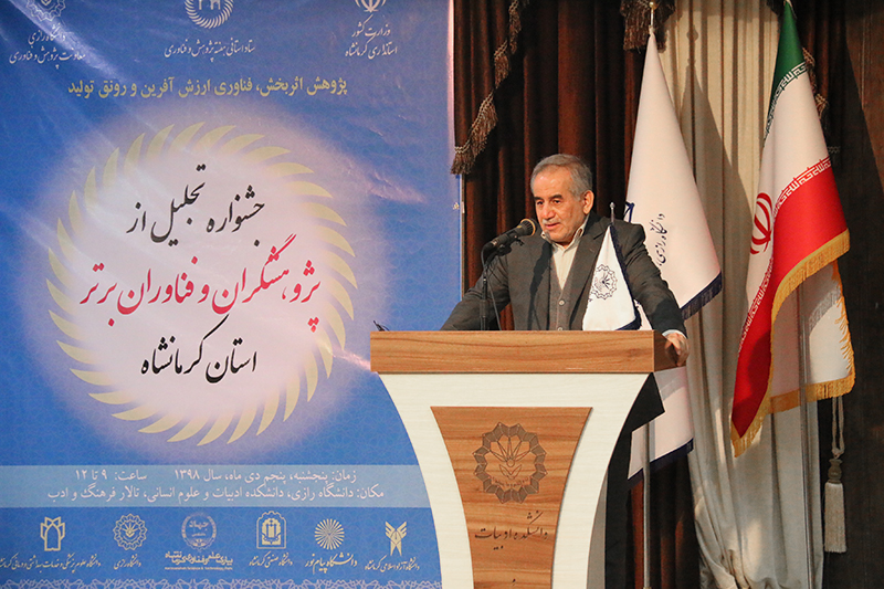 ه گزارش روابط عمومی دانشگاه رازی، مراسم تجلیل از پژوهشگران و فناوران برتر استان کرمانشاه، پنجم دی ماه ۱۳۹۸ با حضور مسئولان، نمایندگان مجلس شورای اسلامی، معاون توسعه مدیریت و منابع استانداری، پژوهشگران، فناوران، اساتید دانشگاهی و دانشجویان، در سالن اجتماعات دانشکده ادبیات و علوم انسانی برگزار شد.