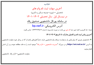 9714 مهلت ثبت نام وام هاي دانشجويي نيمسال اول سال تحصيلي 1402 - 1401 شناسه : 5172299