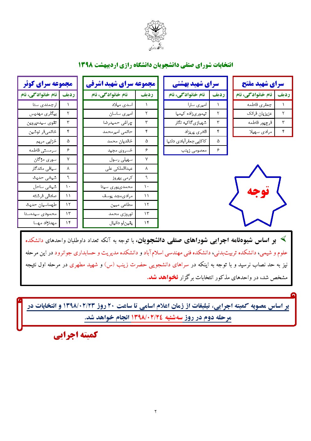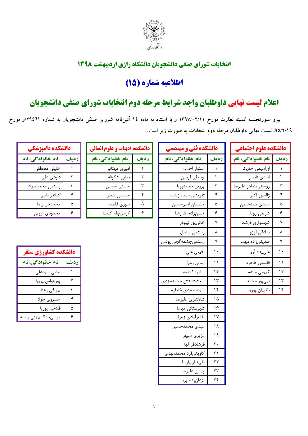 اعلام لیست نهایی داوطلبان واجد شرایط مرحله دوم انتخابات شورای صنفی دانشجویان - معاونت دانشجویی