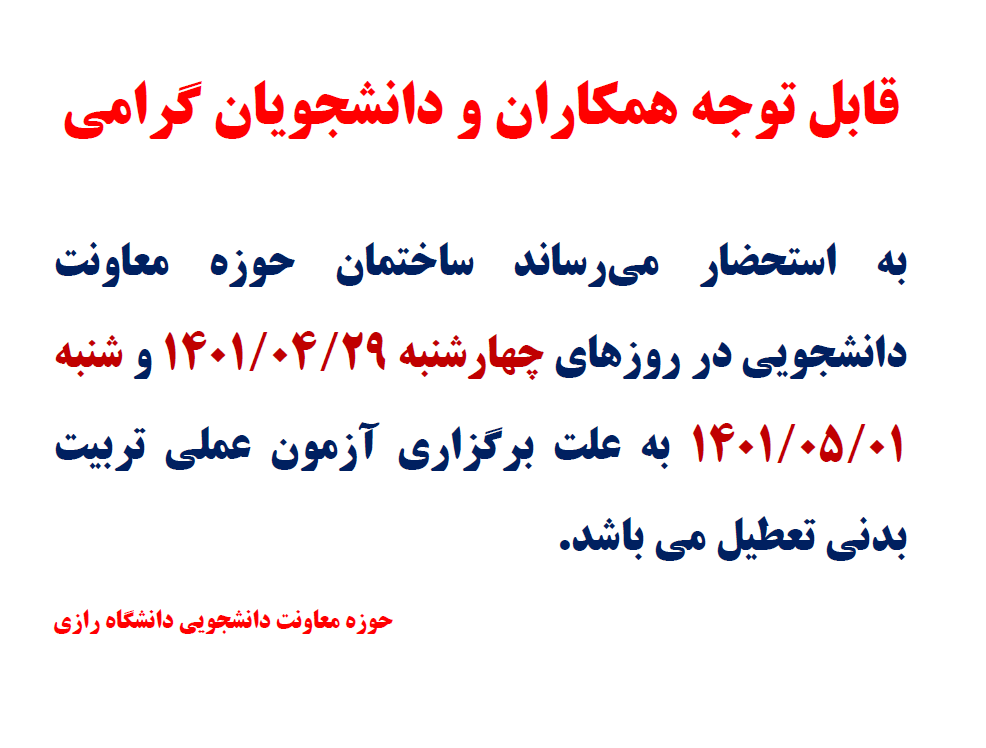 تعطیلی ساختمان حوزه معاونت دانشجویی به دلیل برگزاری آزمون عملی تربیت بدنی - معاونت دانشجویی