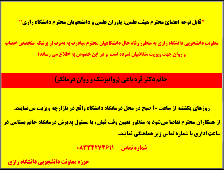 دعوت از پزشک متخصص در درمانگاه دانشگاه رازی - معاونت دانشجویی