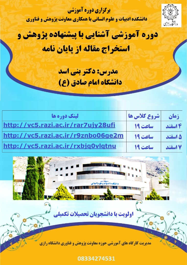 دوره آموزشی آشنایی با پیشنهاده پژوهش و استخراج مقاله از پایان نامه