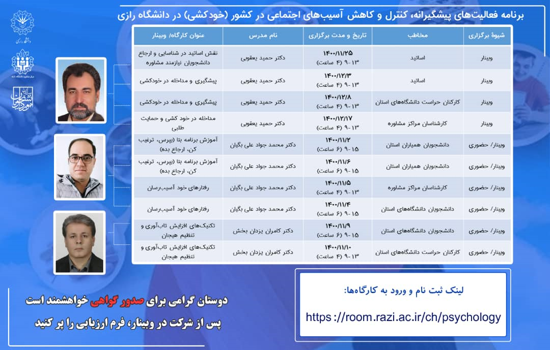 وبینار آموزشی فعالیتهای پیشگیرانه، کنترل و کاهش آسیبهای اجتماعی در کشور (در خصوص خودکشی) - معاونت دانشجویی