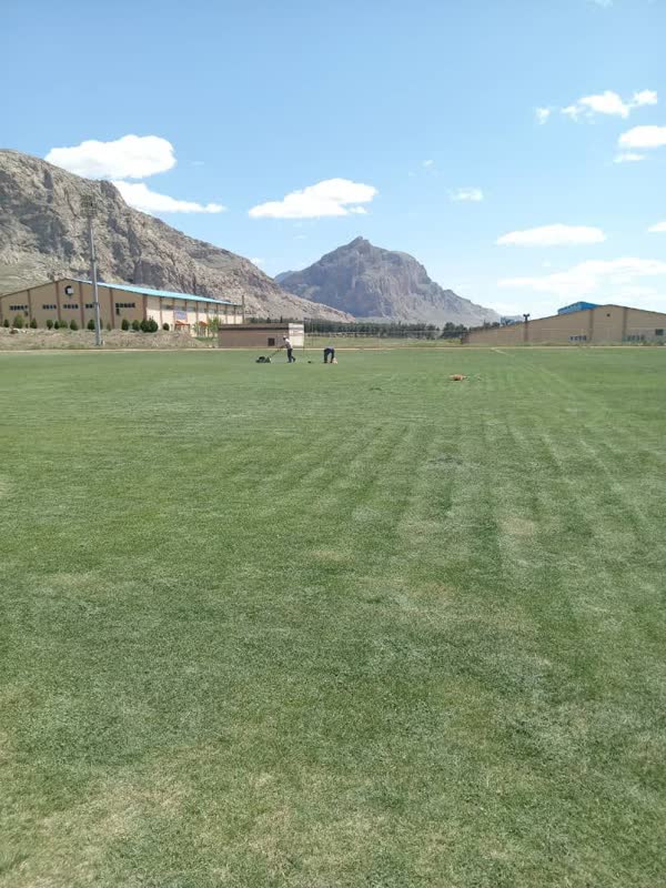 عملیات چمن زنی و نظافت محوطه زمین فوتبال