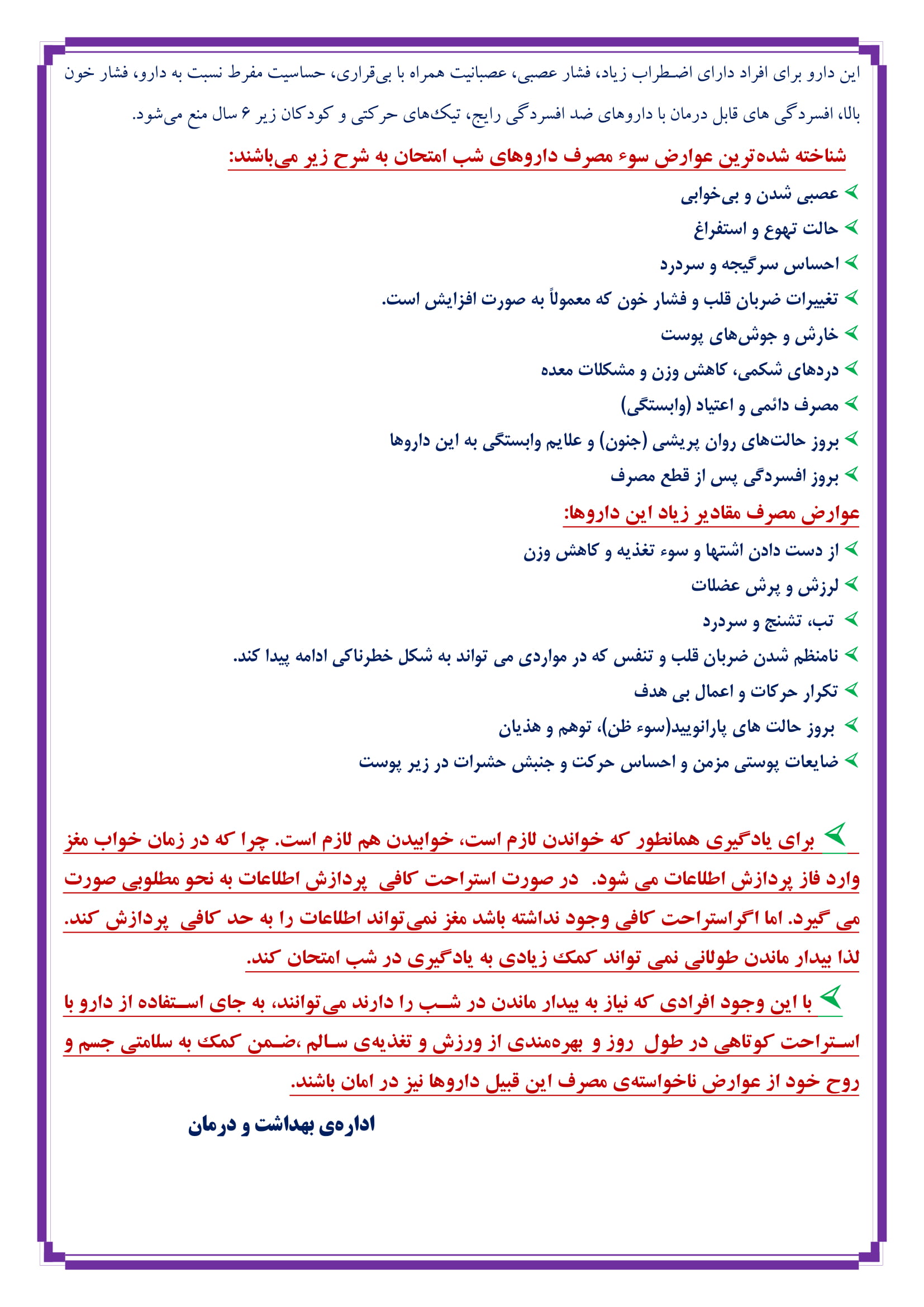 این داروها و ترکیبات در ابتدا،برای درمان افسردگی ،خواب الودگی در طول روز و سندرم خستگی مزمن مورد استفاده قرار میگرفتند.