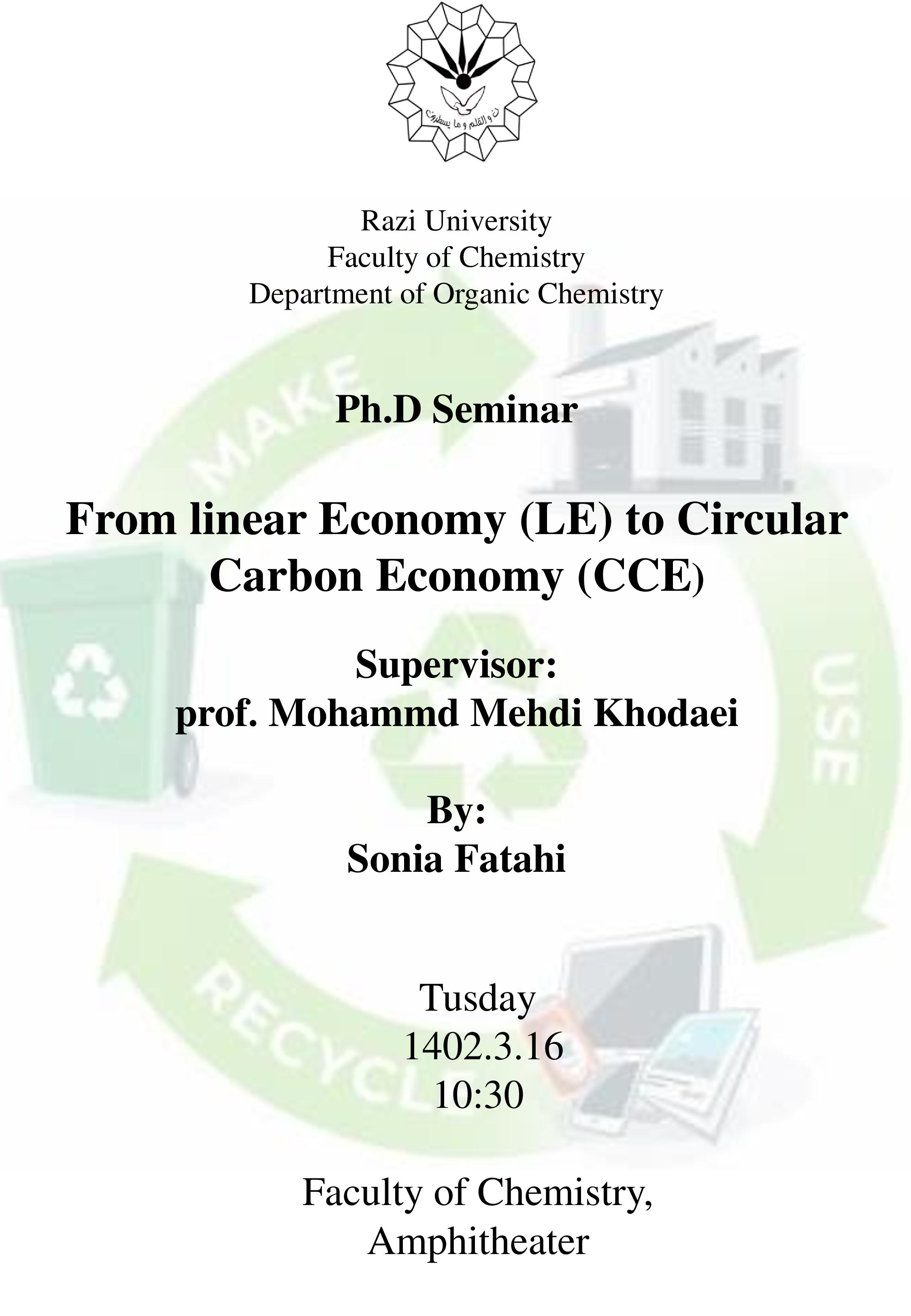جلسه سمینار دانشجوی دکتری شیمی آلی خانم سونیا فتاحی (1402/03/16) - دانشکده شیمی