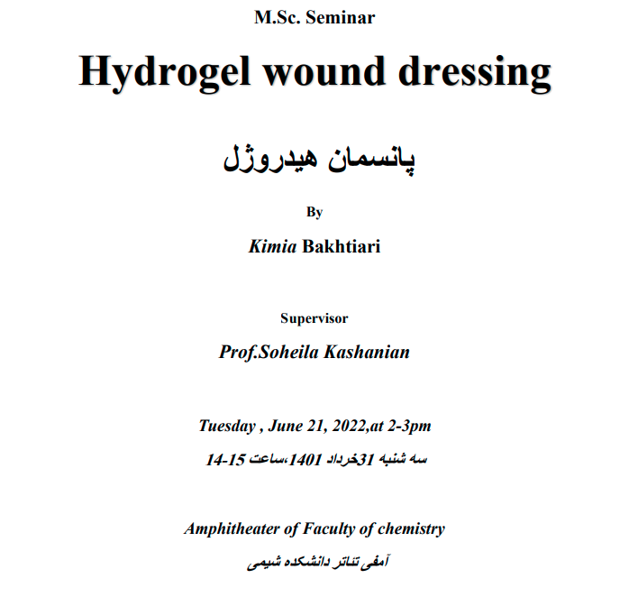 جلسه سمینار دانشجوی کارشناسی ارشد شیمی کاربردی خانم کیمیا بختیاری (1401/03/31) - دانشکده شیمی