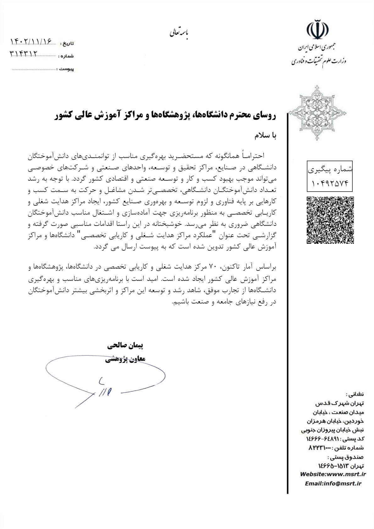 کانالهای ارتباطی با دفتر ارتباط با جامعه و صنعت وزارت علوم، تحقیقات و فناوری