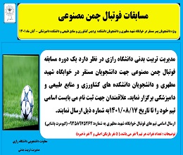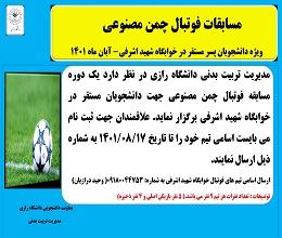 996 مدیریت تربیت بدنی دانشگاه رازی برگزار نمود: مسابقات والیبال گرامیداشت دهه مبارک فجر در بخش کارکنان و اعضای هیات علمی مدیریت تربیت بدنی دانشگاه در راستای برنامه های گرامیداشت ایام الله دهه مبارک...