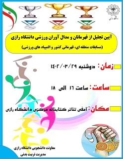 779 مدیریت تربیت بدنی دانشگاه رازی به مناسبت گرامیداشت هفته خوابگاه ها برگزار نمود: برگزاری مسابقات مینی فوتبال گرامیداشت هفته خوابگاه ها (خوابگاه شهید اشرفی ) مدیریت تربیت بدنی دانشگاه در راستای...