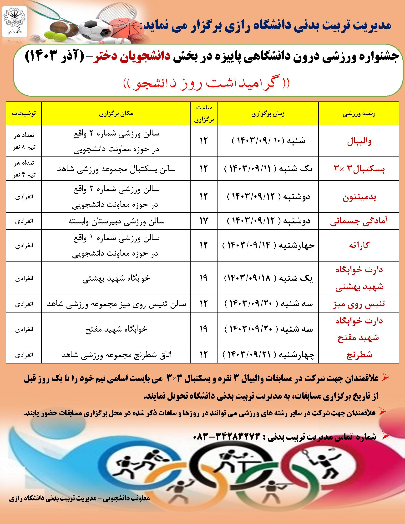 مدیریت تربیت بدنی دانشگاه رازی برگزار می نماید: