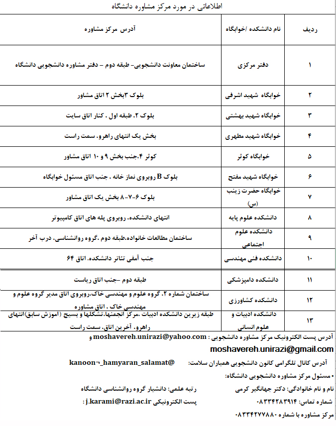 مراکز مشاوره - پرتال اصلی دانشگاه رازی