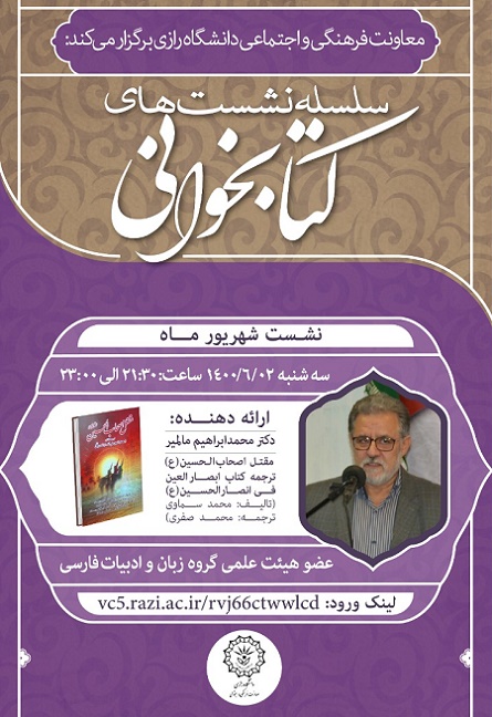 معاونت فرهنگی و اجتماعی دانشگاه رازی، سنت مبارک کتابخوانی و نقد و بررسی کتاب را که سهشنبههای آخر هر ماه برگزار میشود راهاندازی نموده است که پنجمین نشست آن با بررسی و گزارش کتاب «مقتل اصحاب الحسین(ع) (محمد سماوی)» با ارائه دکتر محمّدابراهیم مالمیر عضو هیئت علمی گروه زبان و ادبیات فارسی دانشگاه رازی به صورت مجازی برگزار میشود.