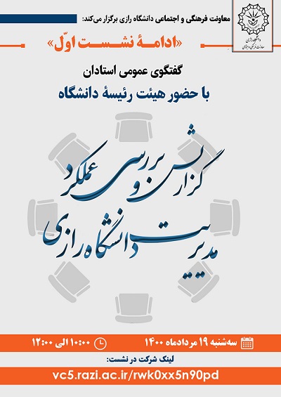 جلسۀ ادامۀ گفتگوی عمومی با عنوان «گزارش و بررسی عملکرد مدیریت دانشگاه رازی