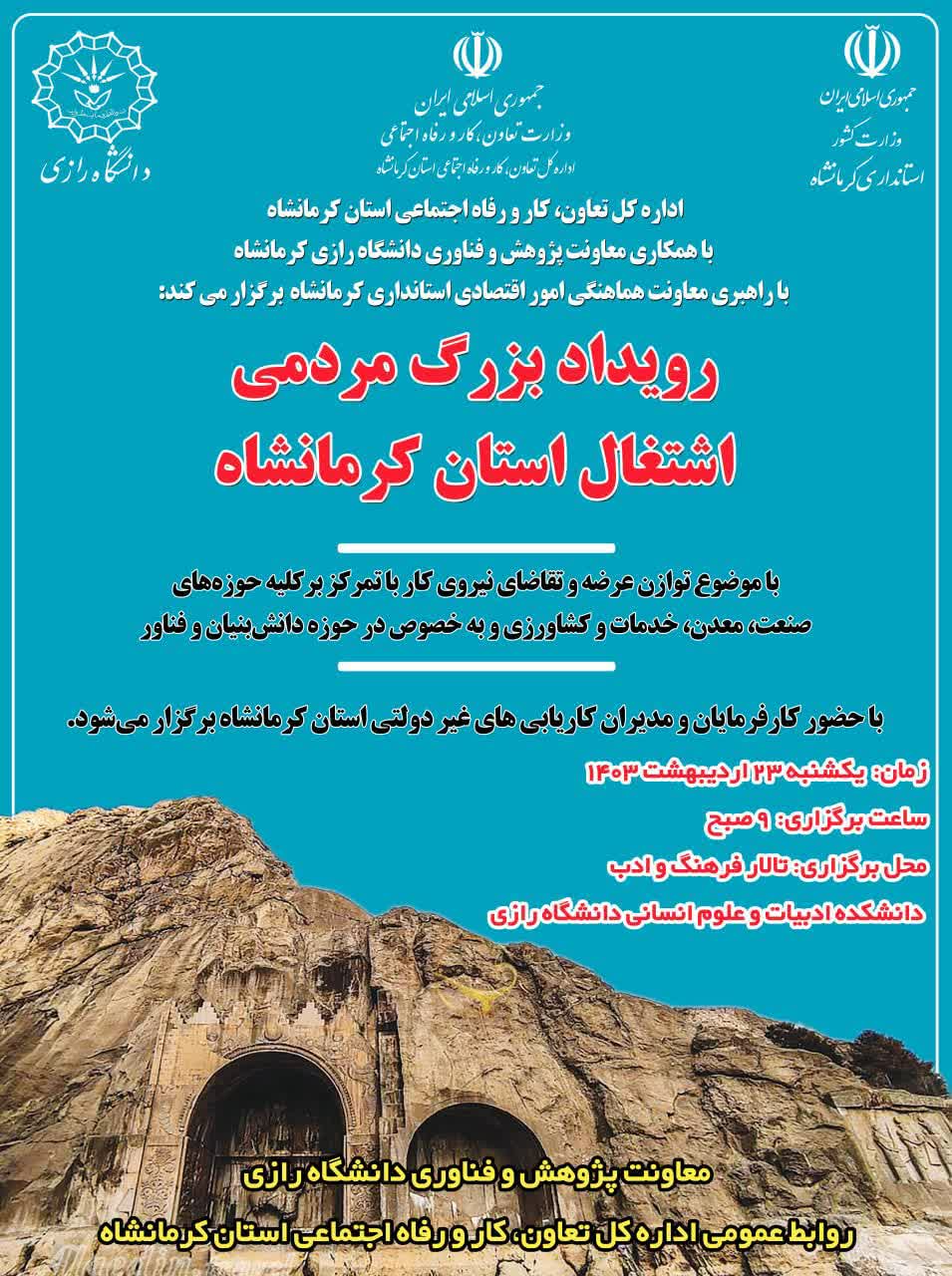 "رویداد بزرگ مردمی اشتغال استان کرمانشاه" در دانشگاه رازی برگزار میگردد.