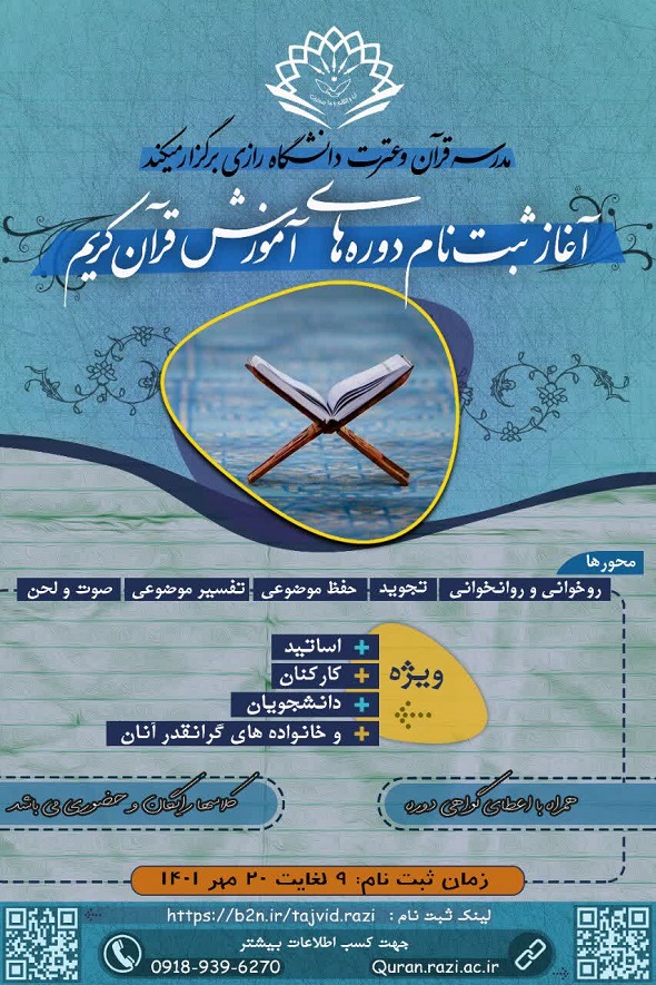 آغاز ثبت نام دورههای آموزش قرآن کریم - پرتال اصلی دانشگاه رازی