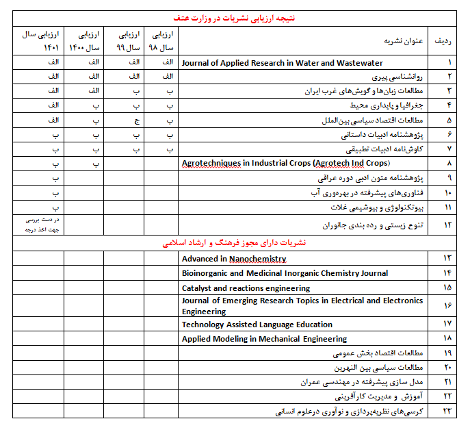 براساس آخرین ارزیابی نشریات در وزارت عتف، رتبه سه نشریه علمی دانشگاه رازی ارتقاء یافت.