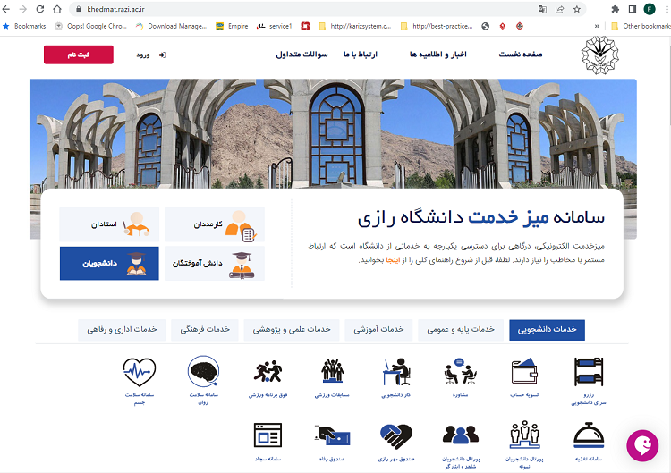 جایگاه میزخدمت الکترونیکی دانشگاه رازی