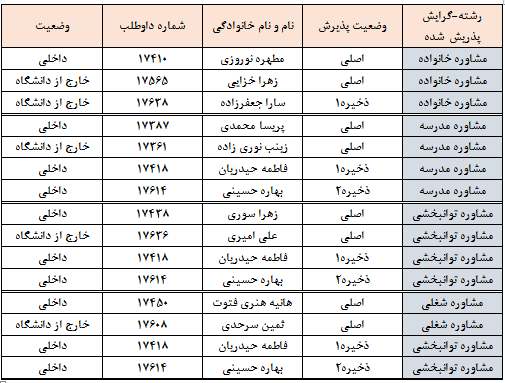 اصلاحیه پذیرفتهشدگان رشته مشاوره (پذیرش بدون آزمون استعدادهای درخشان مقطع کارشناسی ارشد سال1400)