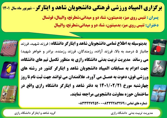 المپیاد ورزشی فرهنگی دانشجویان شاهد و ایثارگر دانشگاه رازی