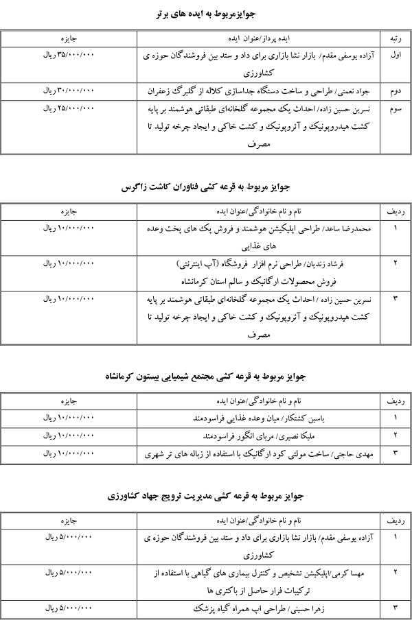 لیست ایدههای برتر در رویداد «استارتاپ تریپ کشاورزی» استان کرمانشاه