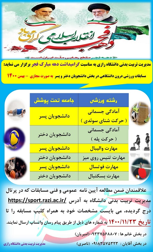 برنامههای جشنواره ورزشی زمستانه گرامیداشت دهه مبارک فجر - پرتال اصلی دانشگاه رازی