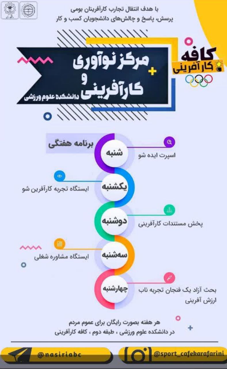 برنامه هفتگی کافه کارآفرینی دانشکده علوم ورزشی دانشگاه رازی