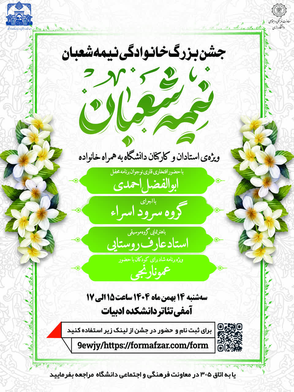 از کلیه اعضای محترم هیئت علمی، کارکنان و خانوادههای گرامی ایشان دعوت میشود با حضور در این برنامه فرهنگی–اجتماعی، در فضایی شاد و معنوی مشارکت نمایند.