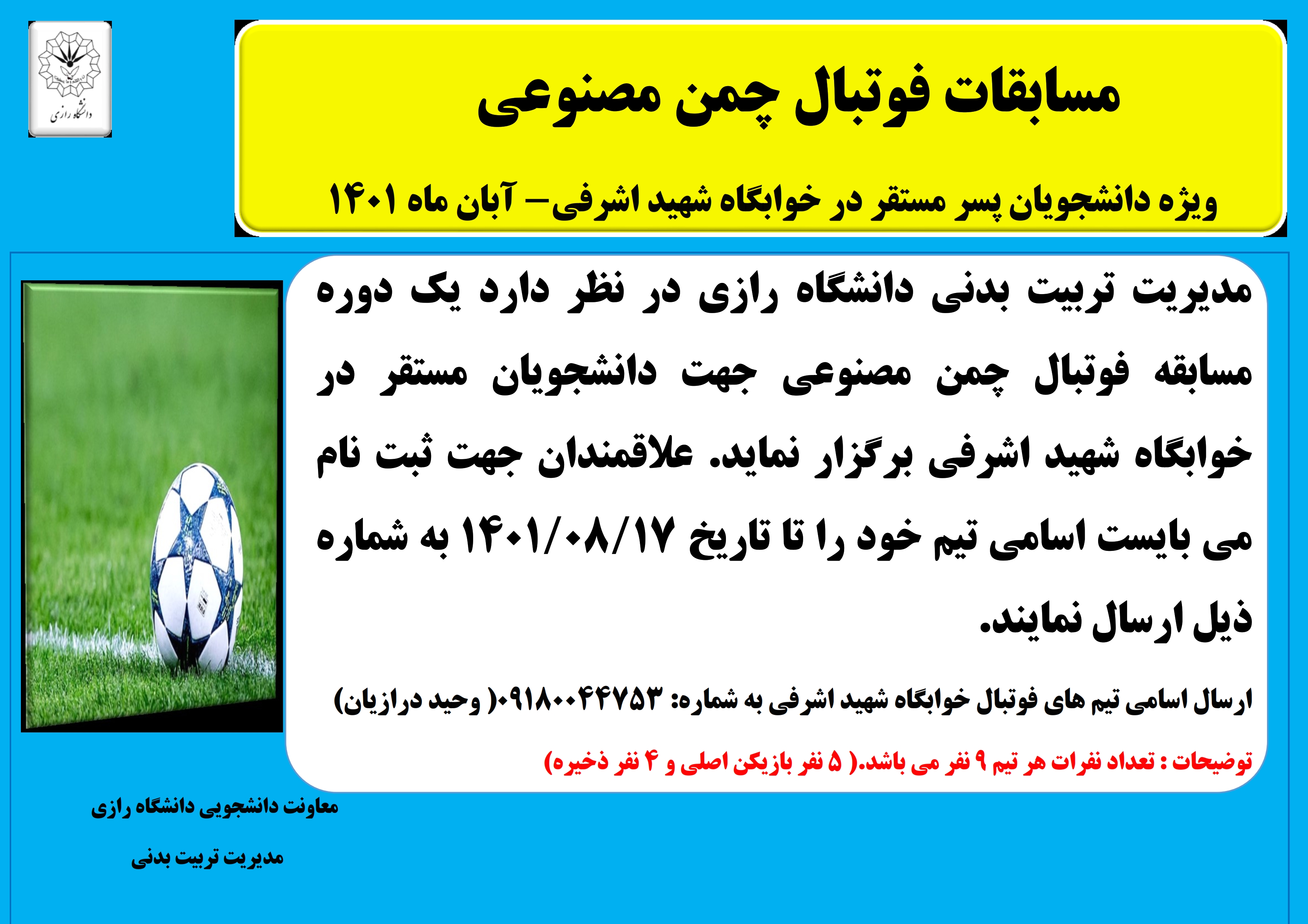 برگزاری مسابقات فوتبال ویژه دانشجویان - پرتال اصلی دانشگاه رازی