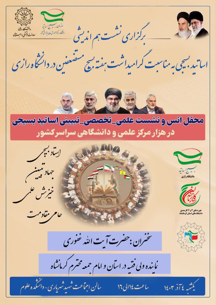 برگزاری نشست هماندیشی اساتید بسیجی به مناسبت گرامیداشت هفته بسیج مستضعفین در دانشگاه رازی - پرتال اصلی دانشگاه رازی