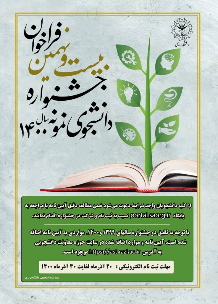 بیست و نهمین فراخوان جشنواره دانشجوی نمونه سال ۱۴۰۰ - پرتال اصلی دانشگاه رازی
