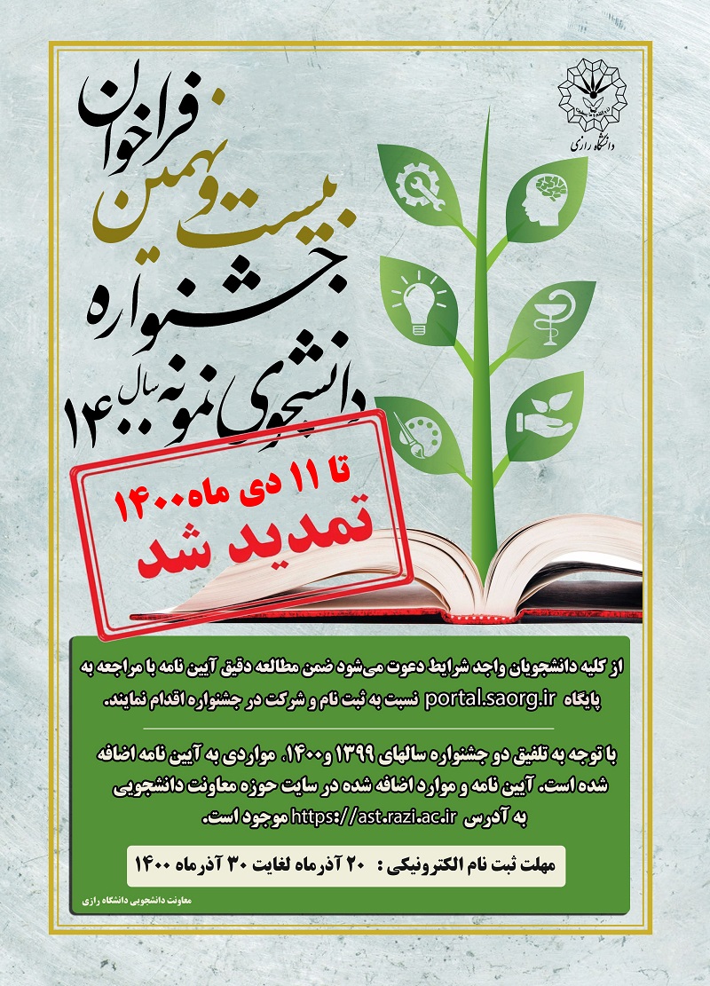 تمدید مهلت ثبت نام در بیست و نهمین جشنواره دانشجوی نمونه - پرتال اصلی دانشگاه رازی